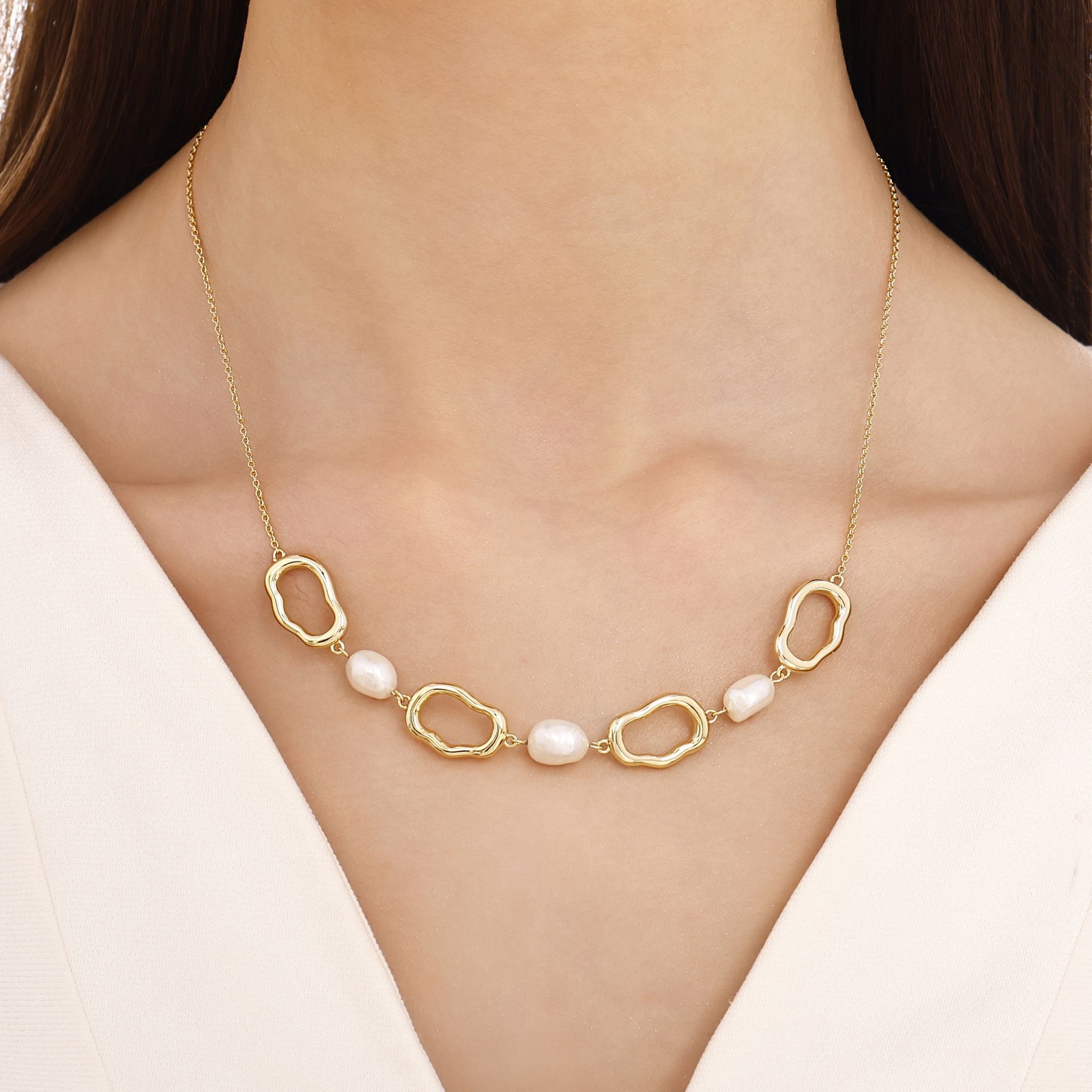 Sun Koleksiyonu İnci Taşlı Gümş Kolye