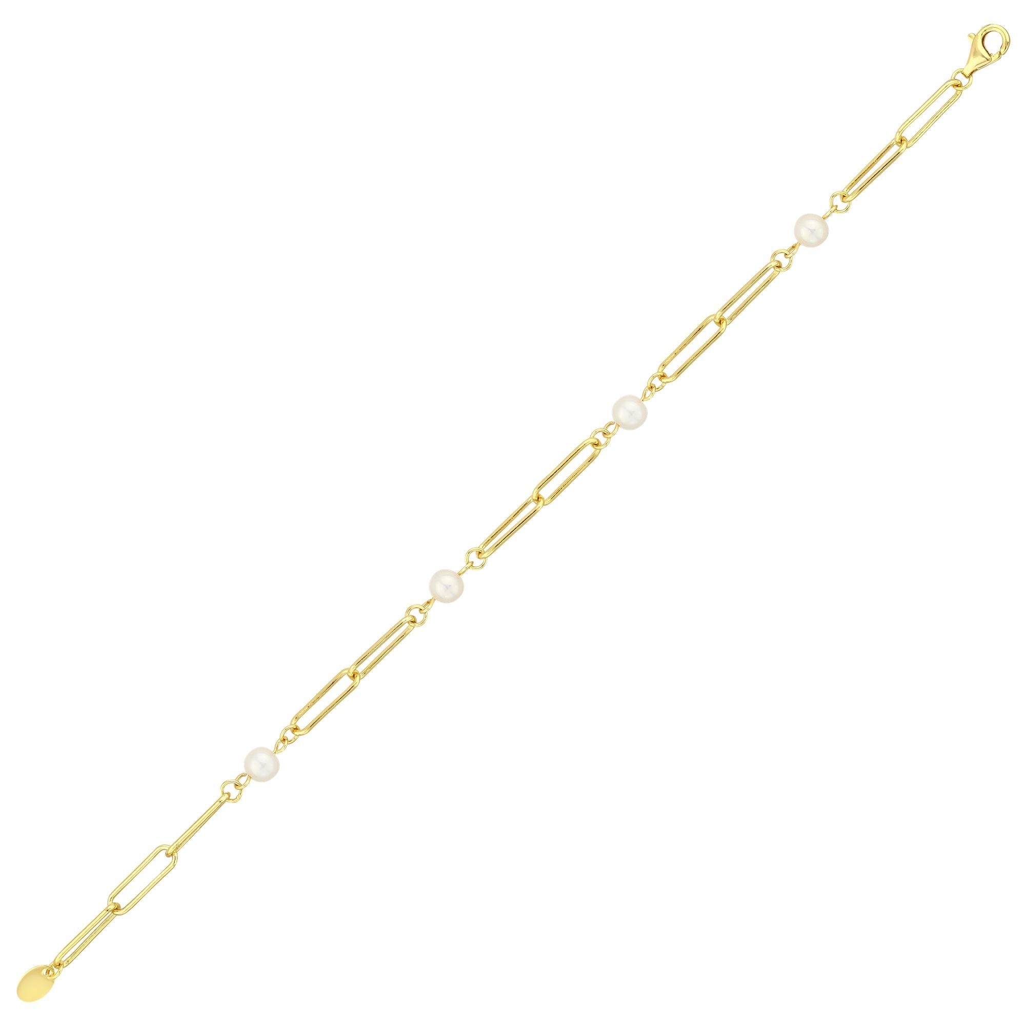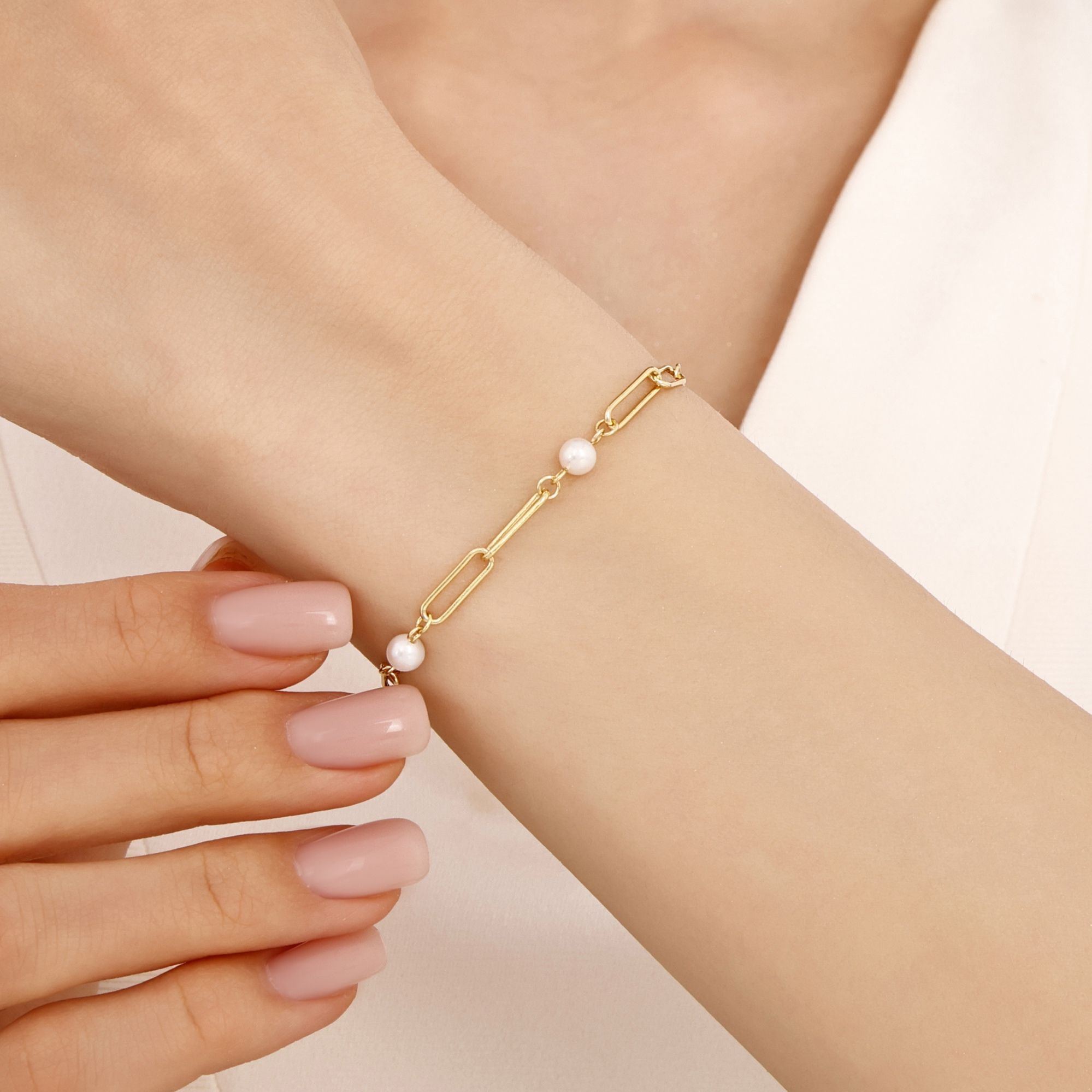 Sun Koleksiyonu İnci Taşlı Zincir Gümüş Bileklik