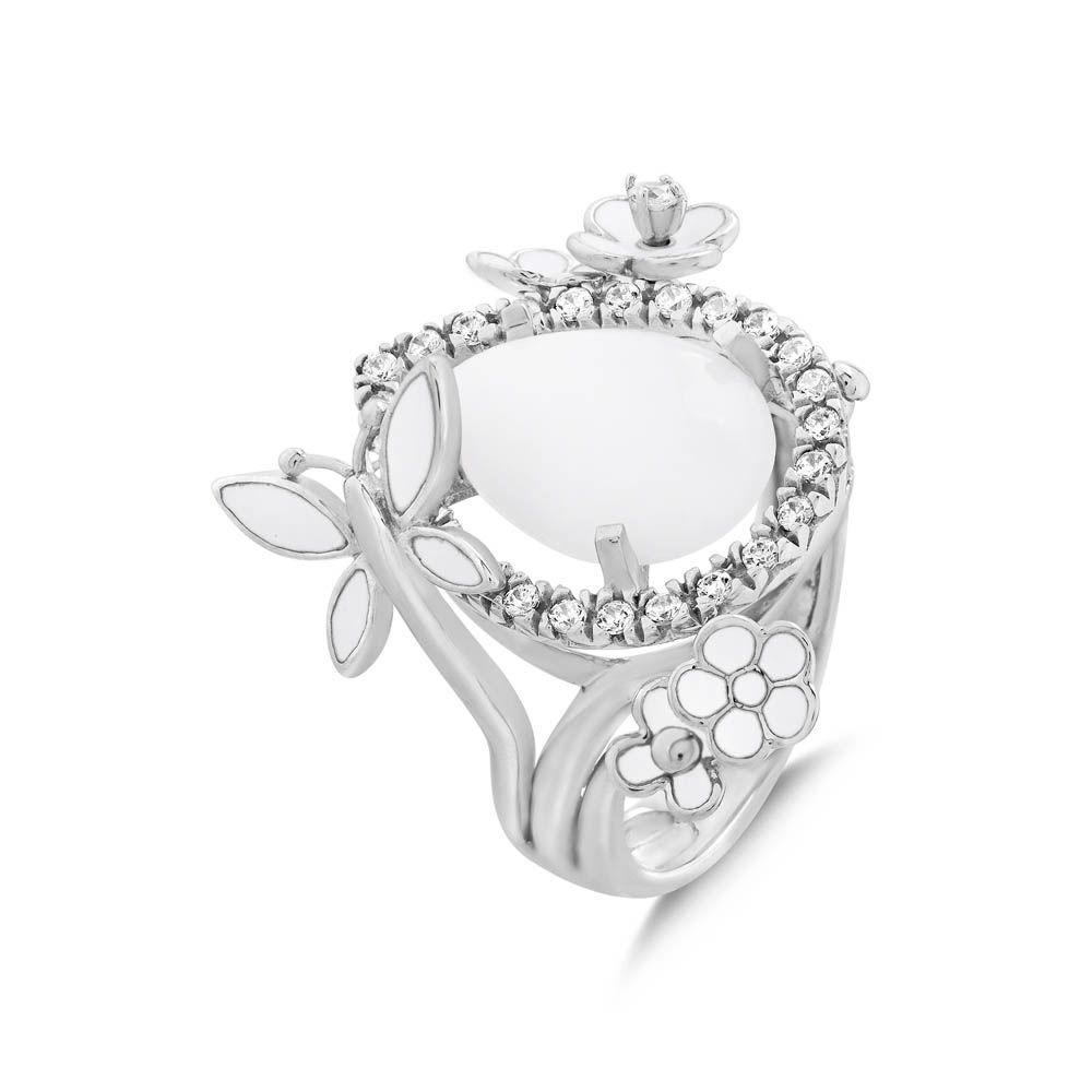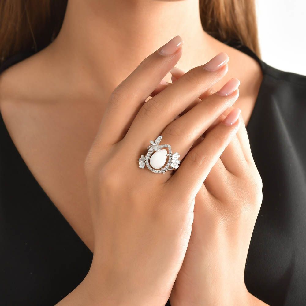 White Dreams Model-12 Beyaz Agat Taşlı Gümüş Yüzük