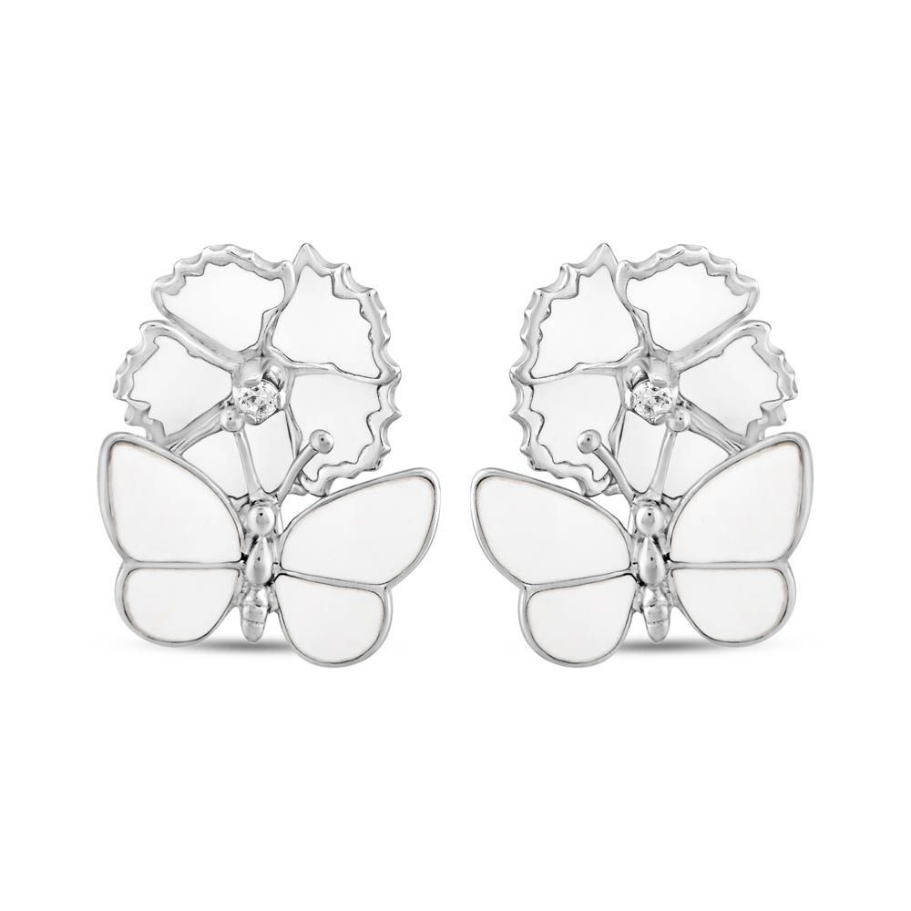 White Dreams Model-14 Kelebek ve Çiçek Tasarımlı Gümüş Küpe
