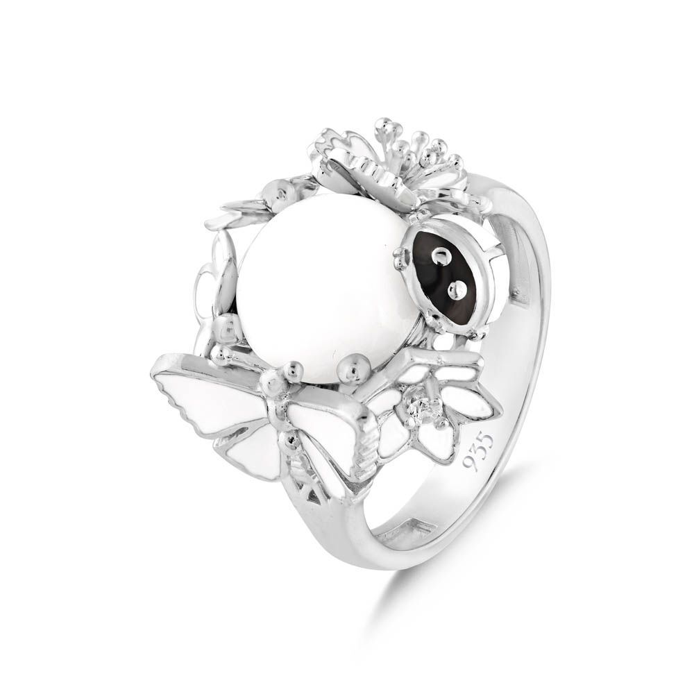 White Dreams Model-15 Beyaz Agat Taşlı Gümüş Yüzük