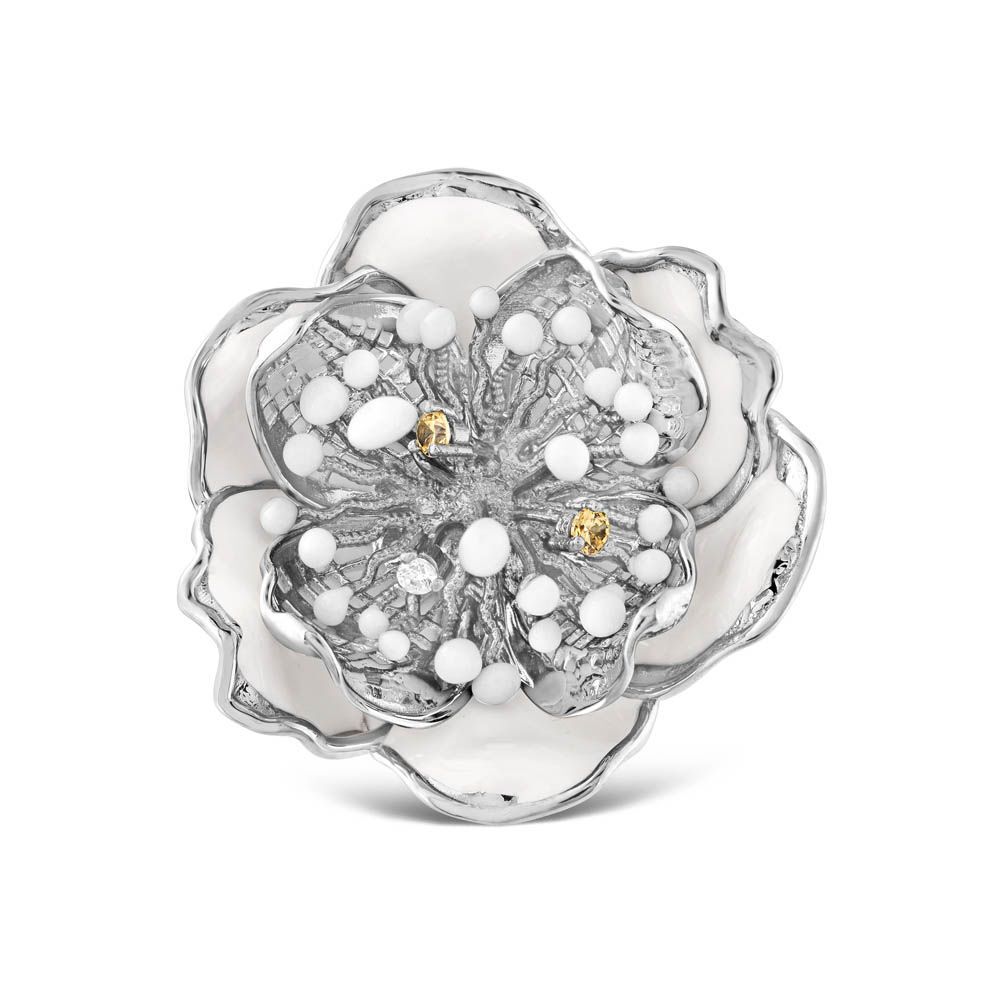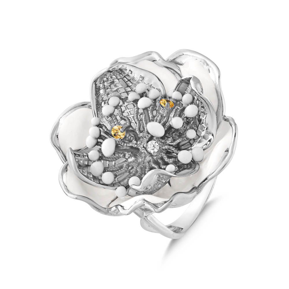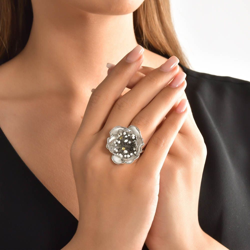 White Dreams Model-16 Çiçek Tasarımlı Büyük Gümüş Yüzük