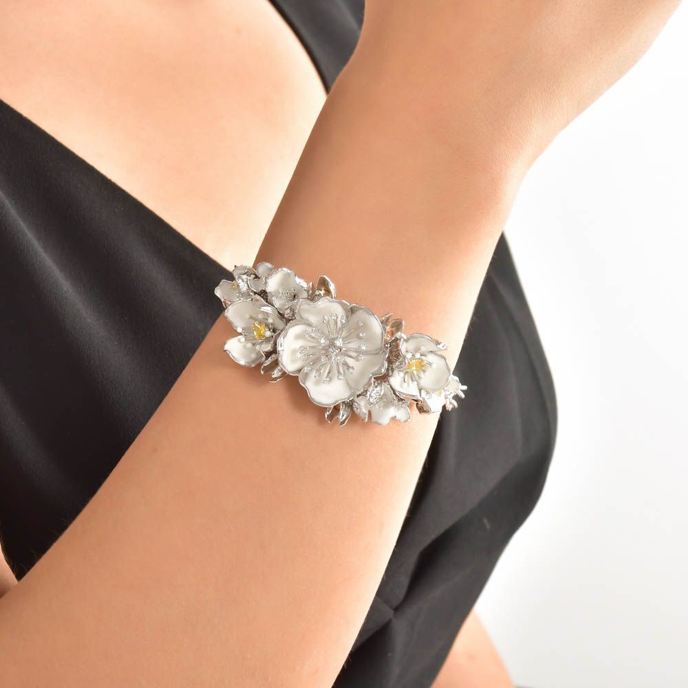 White Dreams Model-17 Tomurcuklu Çiçek Tasarımlı Gümüş Bileklik