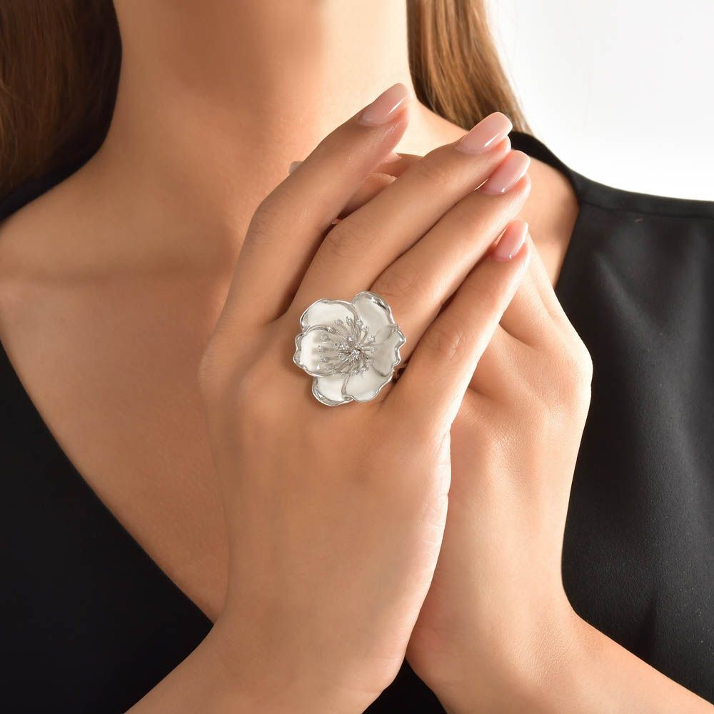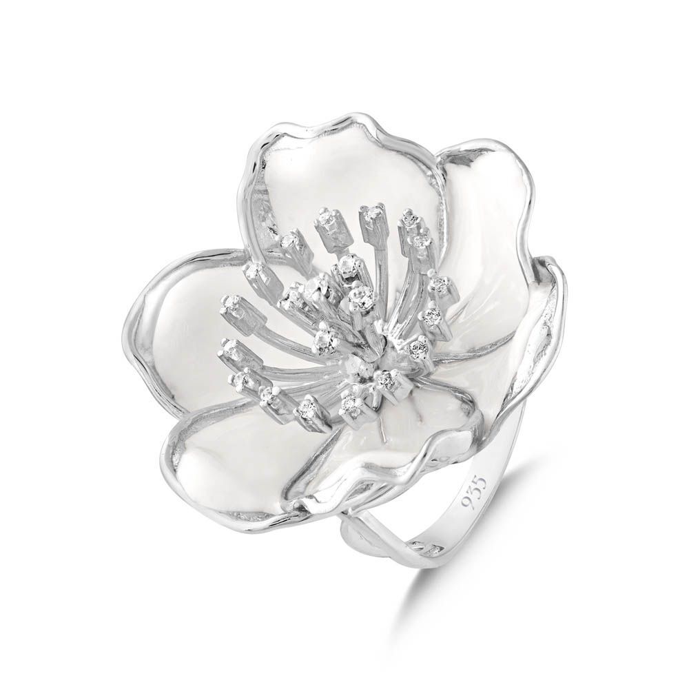 White Dreams Model-17 Tomurcuklu Çiçek Tasarımlı Gümüş Yüzük