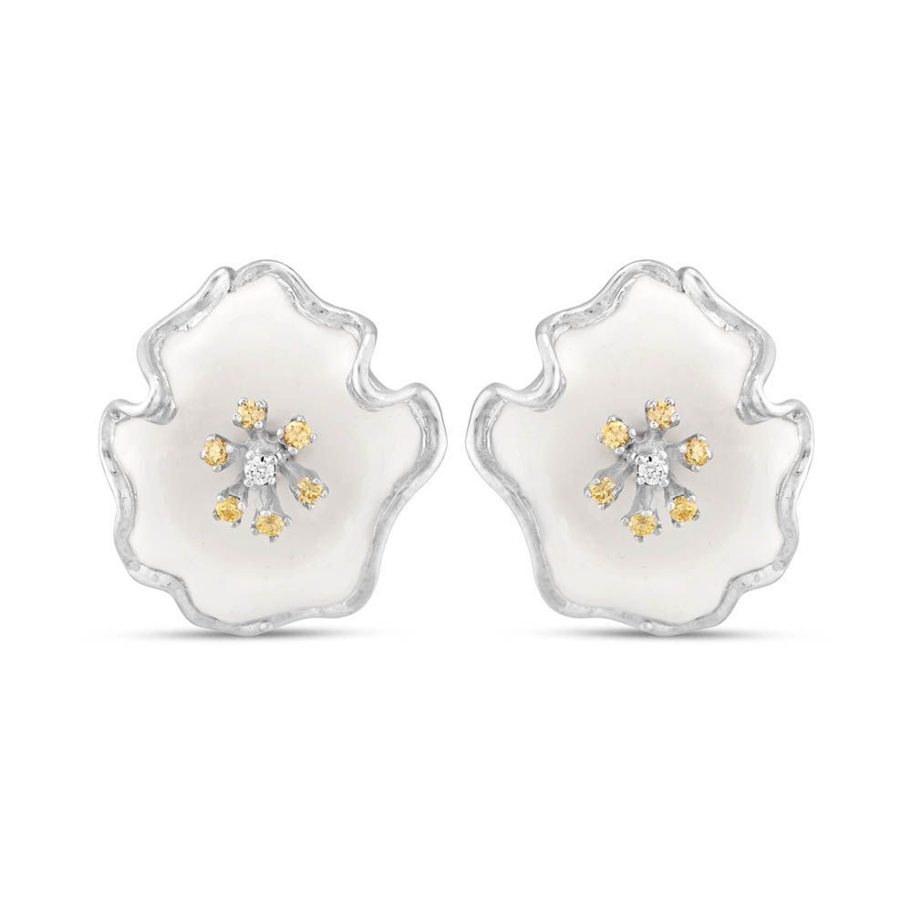 White Dreams Model-2 Tomurcuklu Çiçek Tasarımlı Gümüş Küpe