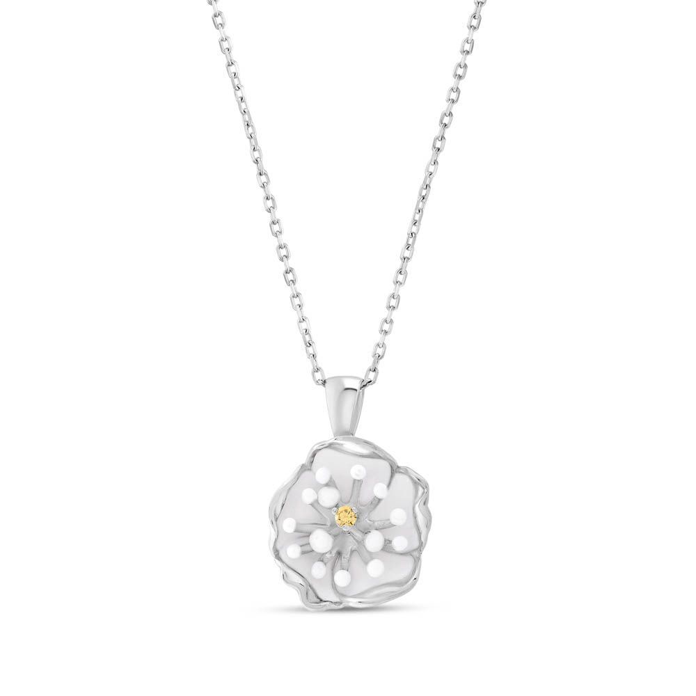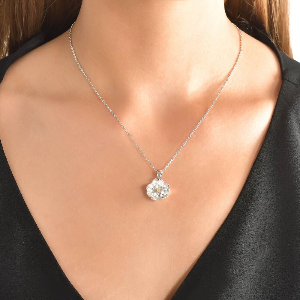 White Dreams Model-3 Tomurcuklu Çiçek Tasarımlı Gümüş Kolye