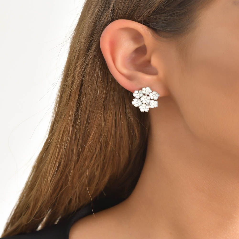White Dreams Model-5 Çiçek Tasarımlı Gümüş Küpe