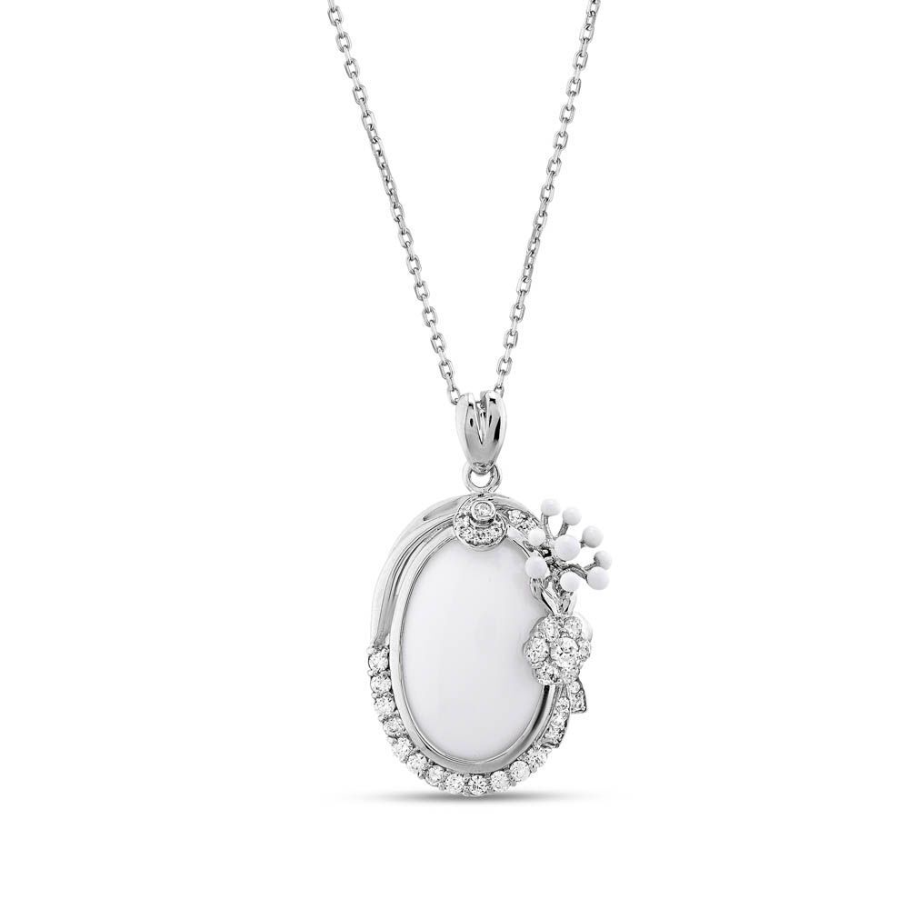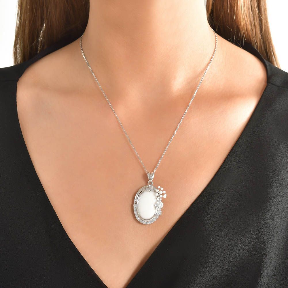 White Dreams Model-6 Beyaz Agat Taşlı Gümüş Kolye