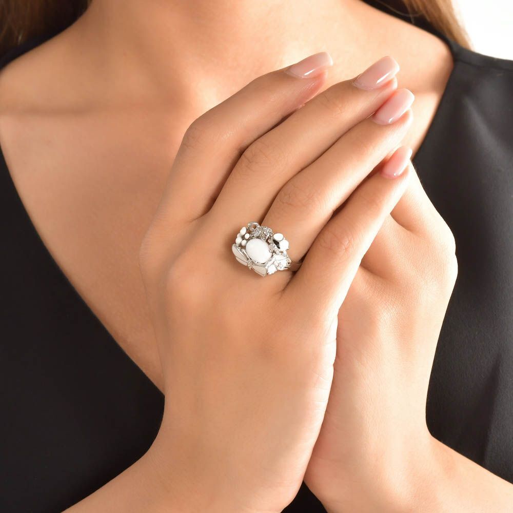 White Dreams Model-8 Beyaz Agat Taşlı Gümüş Yüzük