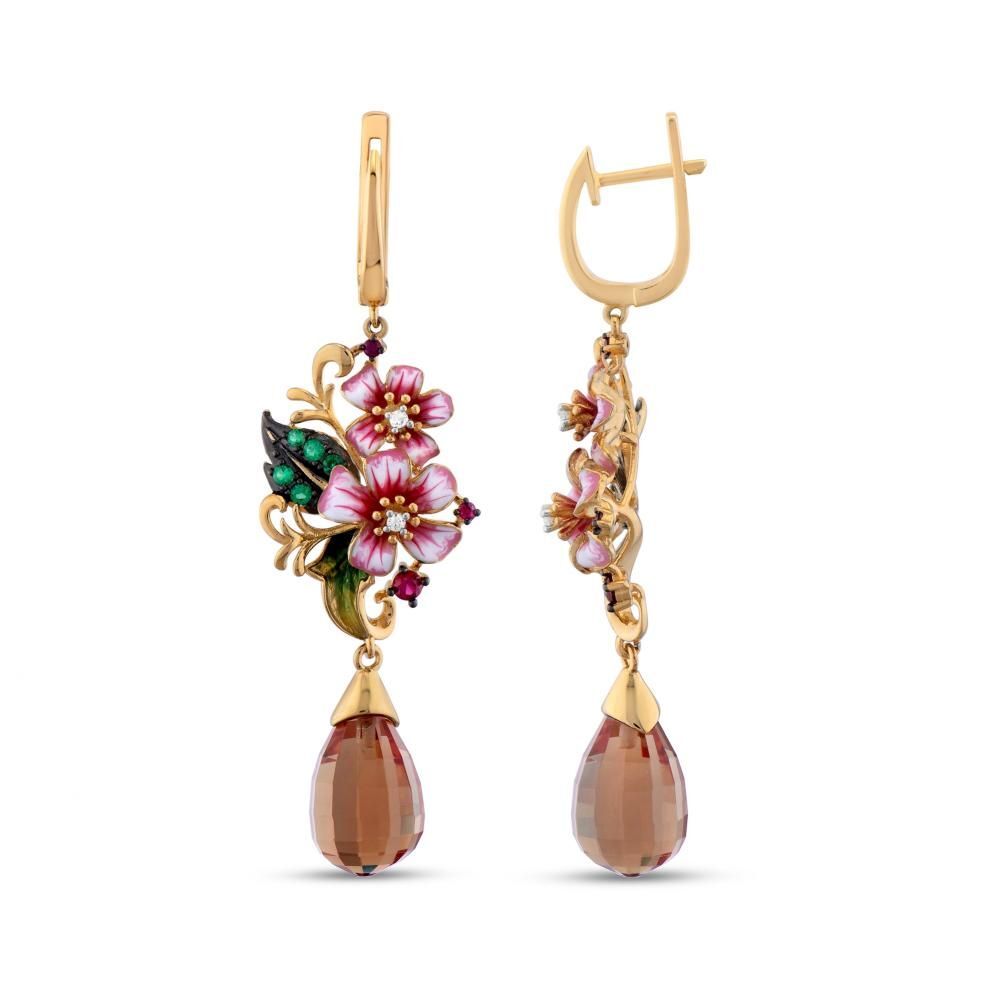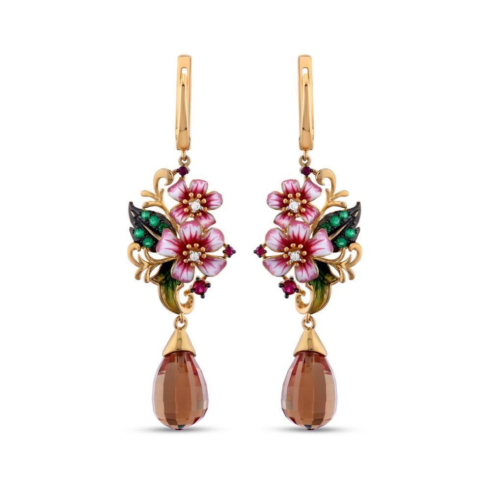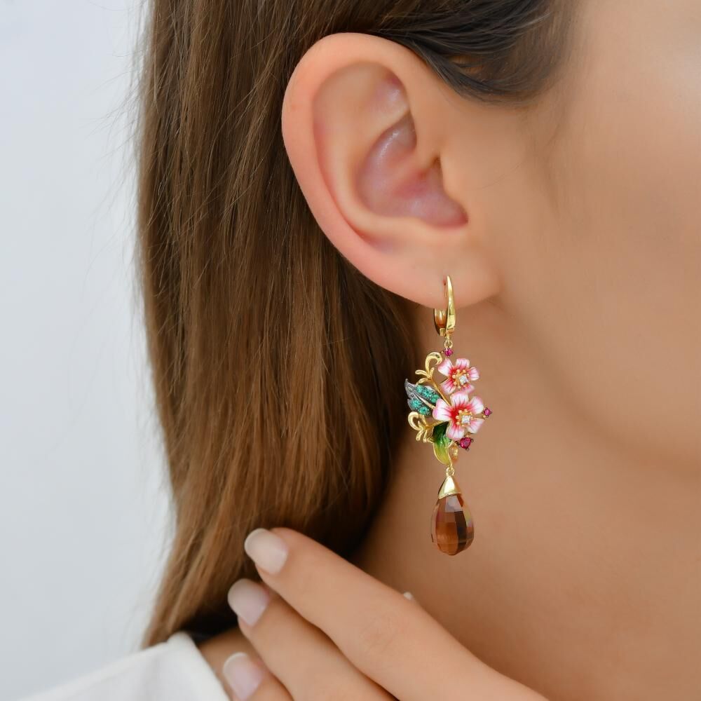 Zultanite Model-1 Çiçek ve Kuş Figürlü Mineli Gümüş Küpe